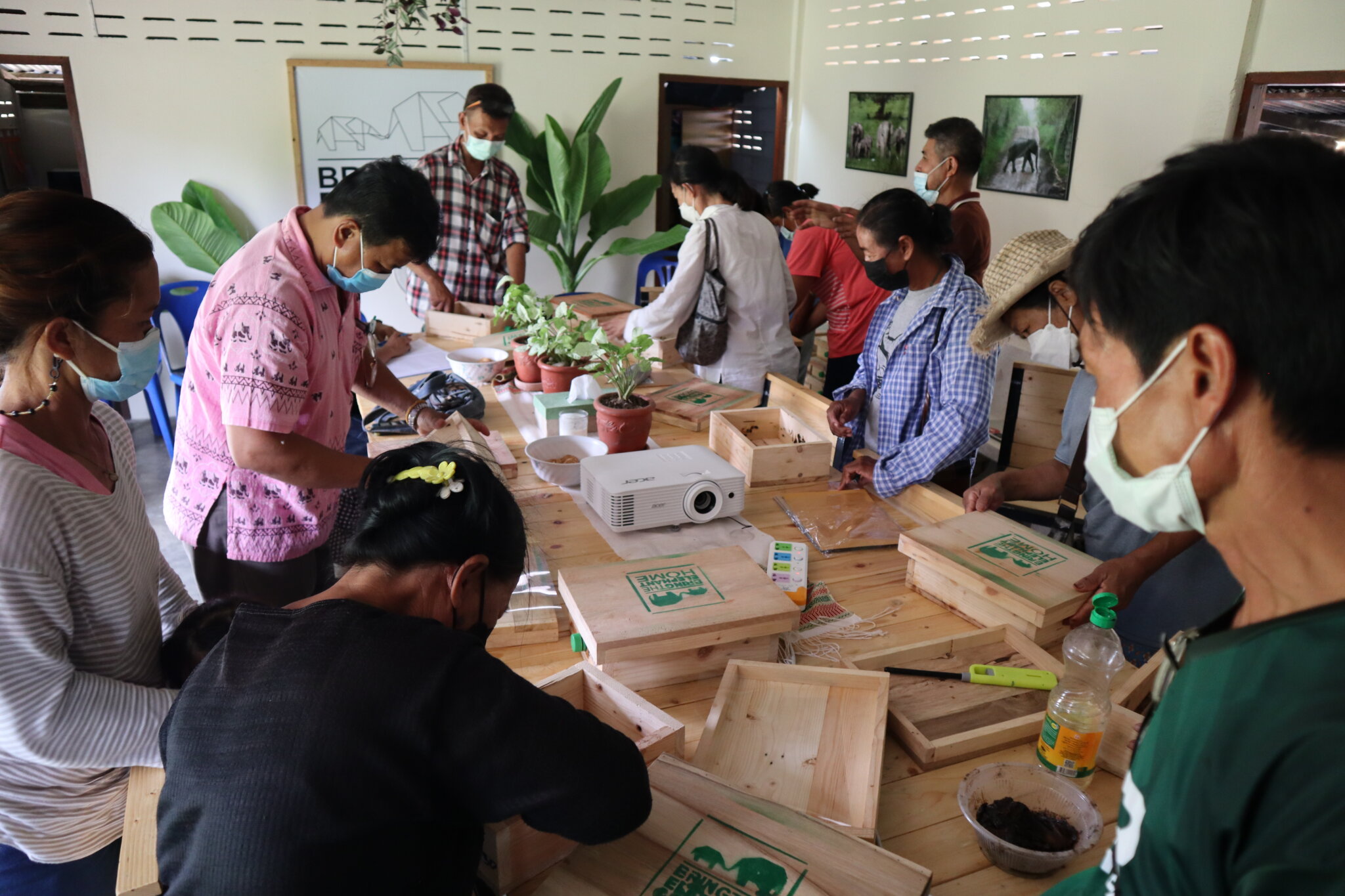 Bring The Elephant Home en de Ruam Thai Beekeeping Group hebben onlangs een gemeenschapsbijeenkomst gehouden voor een gedeelde visie over inheemse bijensoorten voor bijenkorfhekken aan de grens van Kuiburi National Park.