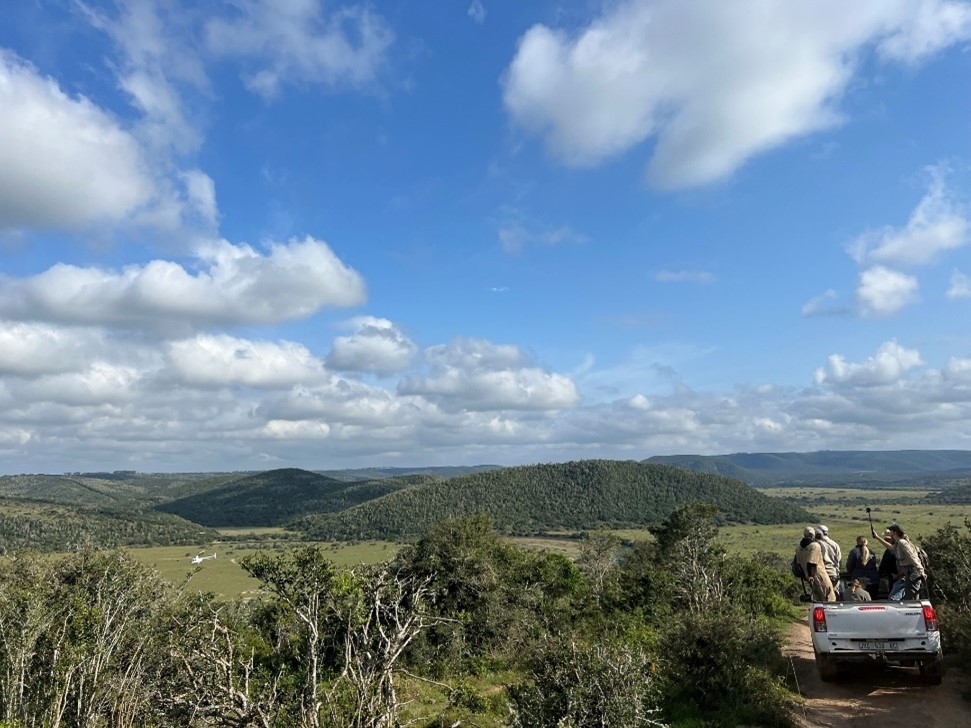 Na een enerverende reis van Londen naar Port Elizabeth via Johannesburg, ontmoette ik  zeven andere onderzoekers uit verschillende hoeken van de wereld, allemaal met een zeer brede en uitgebreide kennis en expertise. Bij aankomst in Kariega Conservation Centre in de Oost-Kaap gingen we meteen van start! Antoinette, David en Brooke presenteerden informatie die we nodig zouden hebben om LoRa (long range-lange afstand) radiohalsbanden te plaatsen bij zes olifanten in het reservaat, en monsters en nauwkeurige metingen te verzamelen tijdens de halsbandoperatie.
