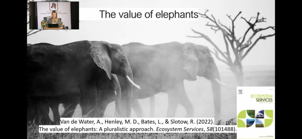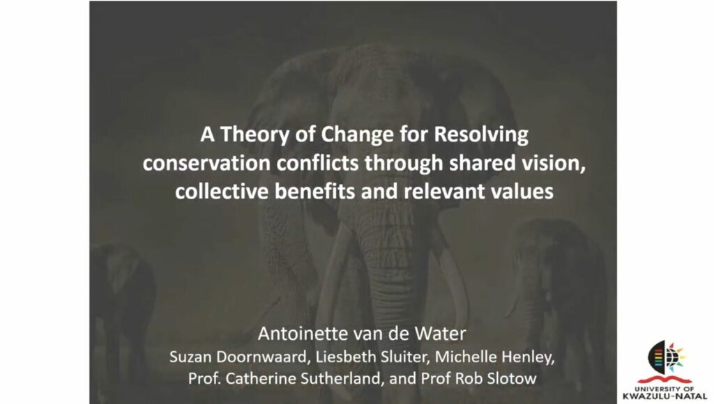 Antoinette van de Water, oprichter en directeur van BTEH, heeft een presentatie gedaan op de SAWMA-conferentie! De conferentie vond plaats in het prachtige Golden Gate Highlands National Park in Zuid-Afrika. Tijdens haar presentatie benadrukte Antoinette de bredere waarde van olifanten, waarbij ze de essentiële rol benadrukte die morele waarden spelen bij het vormgeven van effectieve natuurbehoudsstrategieën. Ze presenteerde haar Theory of Change voor het oplossen van natuurbehoudsconflicten door middel van een gezamenlijke aanpak, gericht op gedeelde doelen, collectieve voordelen en het omarmen van relevante waarden.