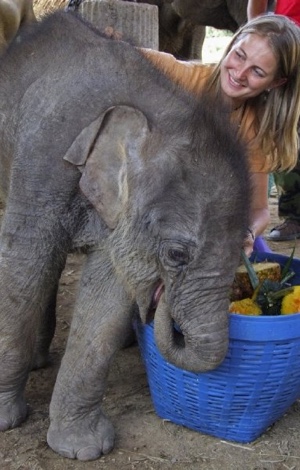 In het Elephant Nature Park hielp ik mee met verzorging van de babyolifantjes. De hele dag (en nacht) waren we met de baby’s bezig: het maken van flessen babyvoeding, eten geven, zwemmen, wandelen en spelen. Terwijl het kleinste babyolifantje rustig op mijn schoot lag te slapen, liepen de tranen over mijn wangen als ik aan het leven dacht waaraan hij net ontsnapt was.