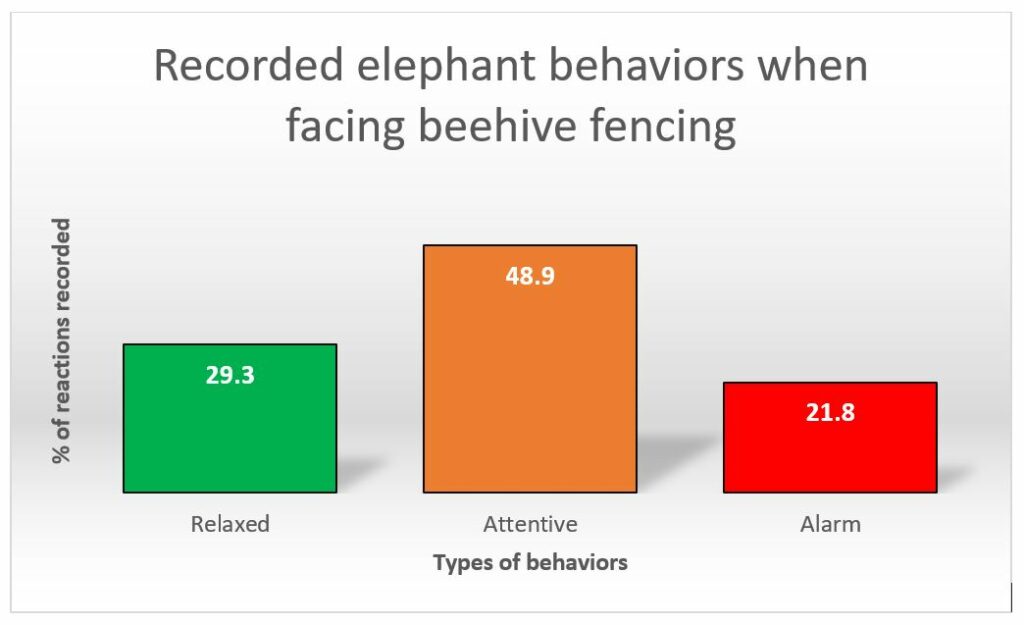 Elephants even have a specific bee alarm rumble vocalization they use to warn others, so they dissuade other elephants to raid. Implementing such a deterrence method can also help fostering research on vocalization and communication in elephants, and as you can see in the videos, it creates wonderful observation opportunities.